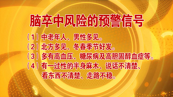 专家强调,脑中风是可以早发现早预防的,并且带有一定的特异性。主持人也带了自己朋友的亲身故事,通过身体细小的变化及早发现了中风征兆,避免了血管的进一步恶化,免除了中风风险。那么究竟哪些人群需要提高警惕呢?有哪些高危因素?敬请关注本期节目。