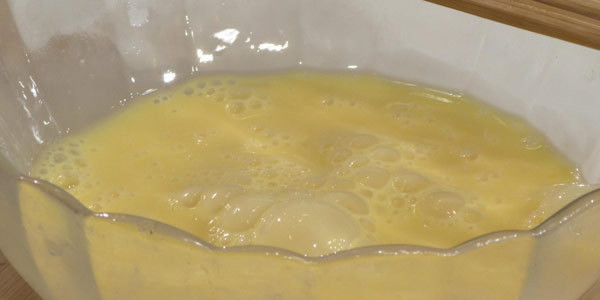 2:取三个鸡蛋,加少许水淀粉搅拌均匀。