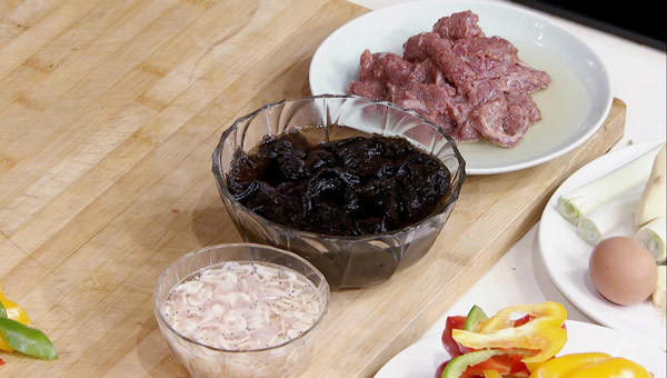 1:紫菜、虾米皮用水泡开,牛肉用淀粉上浆。