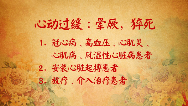 翁老是活血化瘀派的大家,自己更是总结出了“活血化瘀十二法”,今天节目中翁老就结合老年人常见的心动过缓,讲解其中一法,“温阳活血法”。翁老介绍,中医认为心动过缓与心阳虚、心气虚关系最大,如果您有以下症状,并且最小心率长期在每分钟60次以下,就要尽早就医了。
