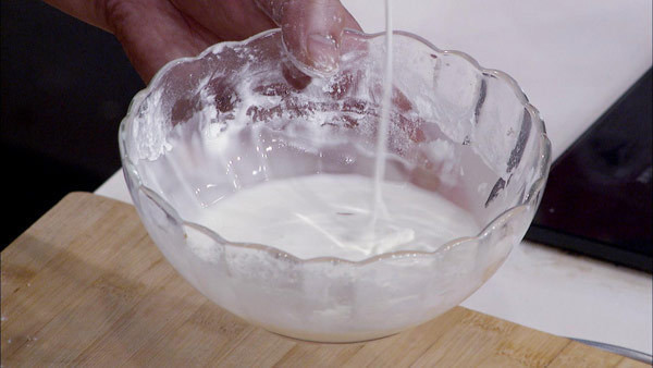 步骤1:一份生粉,三份玉米淀粉,适量水,将糊和至酸奶浓稀程度即可。