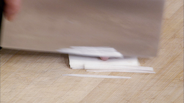 步骤1:葱白切成细丝。