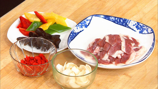 食材:鸭胸肉 百合 枸杞 绿彩椒 木耳