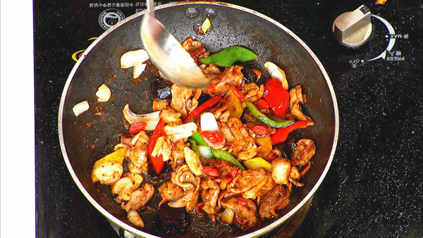 步骤4:放入枸杞翻炒均匀,出锅即可。