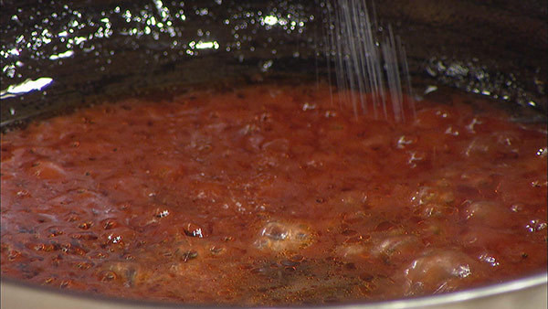 步骤3:炒锅烧热倒油,加番茄沙司和清水炒匀,再调入料酒、盐、糖、和白醋搅匀烧开。