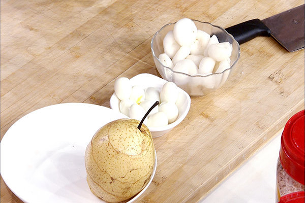 食材:肉馅、雪梨、荸荠、鹌鹑蛋