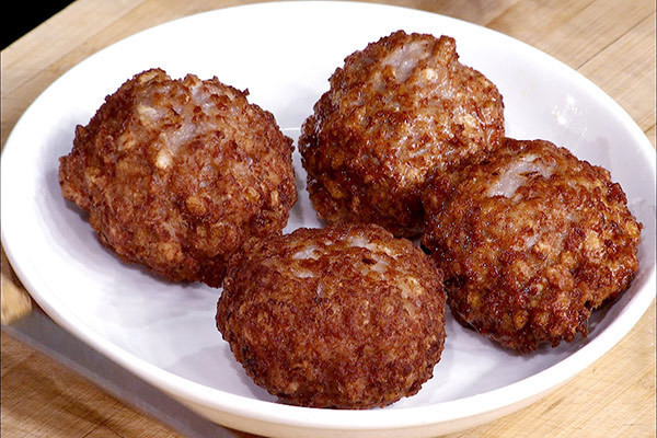 2:手搓丸子,将鹌鹑蛋塞入丸子内。