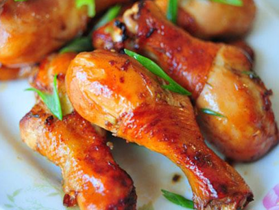 6、刷上一层蜂蜜水,送入预热200度的烤箱,中层,烤焙约30分钟(中途可取出鸡腿,翻一两次面并刷上蜂蜜水)。