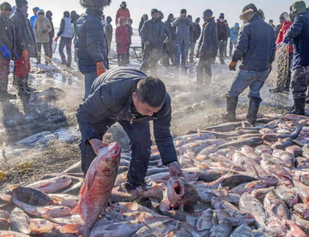 查干湖冬捕拉开序幕 马车拉网场面壮观