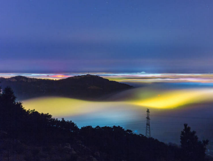 青岛现平流雾景观 流光溢彩宛若仙境