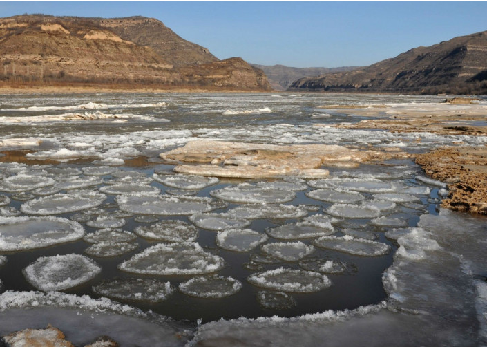 黄河大面积流凌 浩浩荡荡气势磅礴