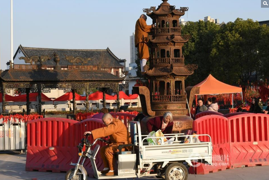 武汉归元寺清理祈福钱 数量太多用面口袋装